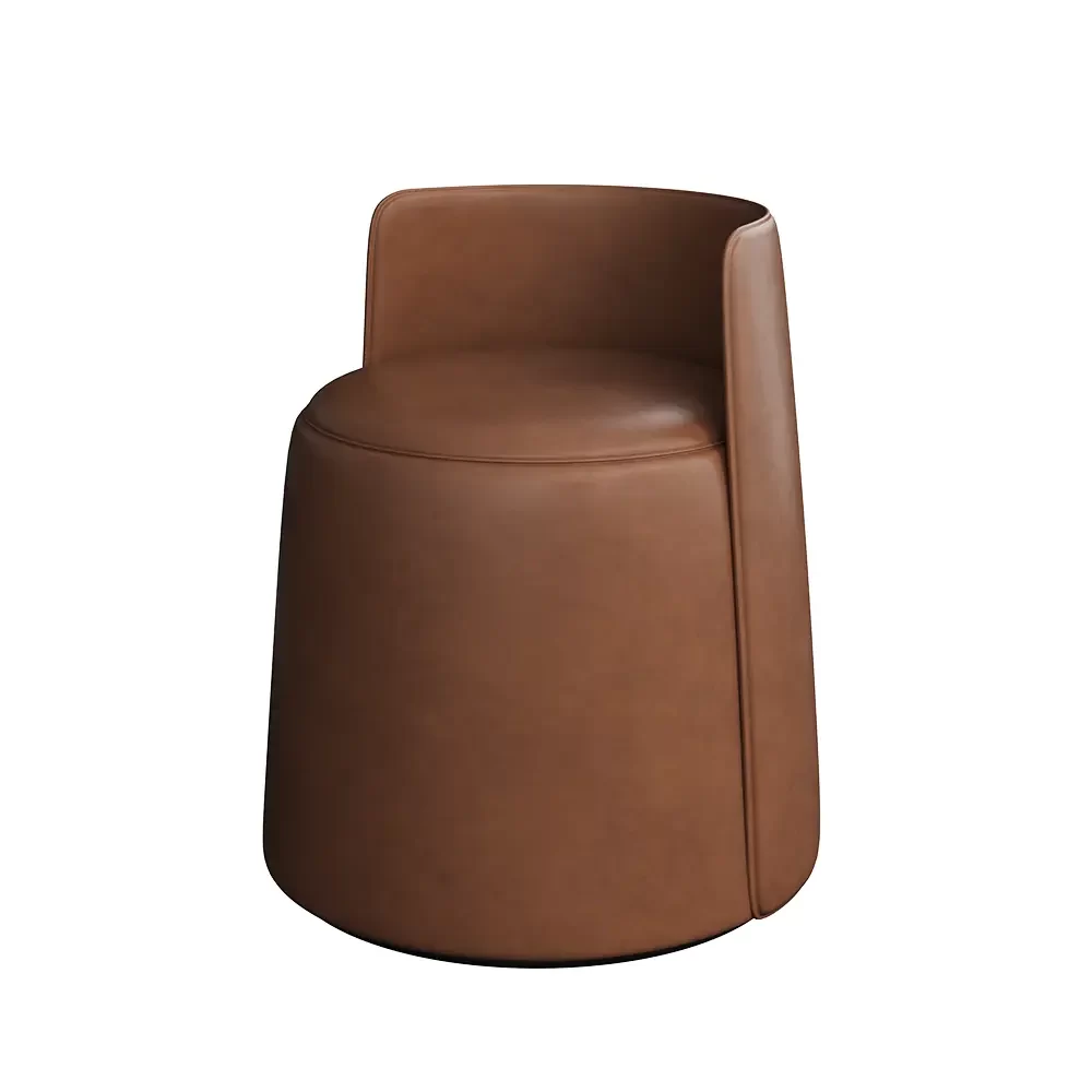 A chic round stool with a low backrest for stylish comfort.